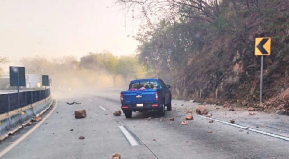 Derrumbes en la Autopista del Sol tras sismo en Guerrero; rocas invaden la vialidad