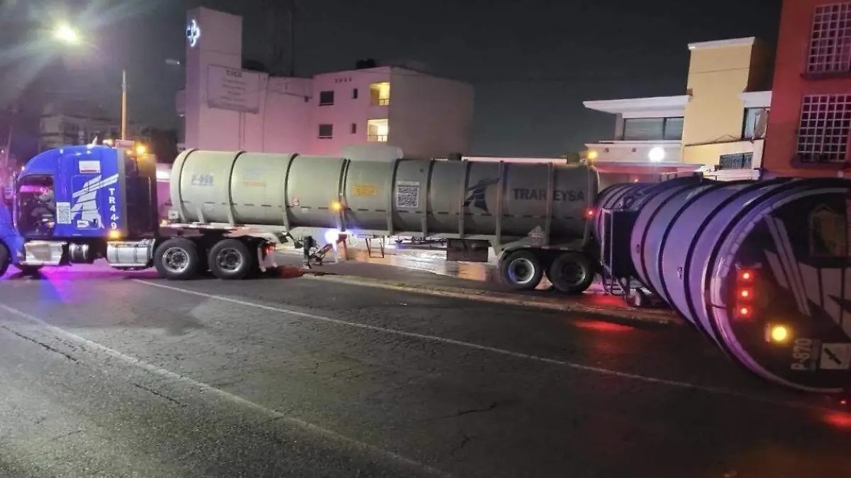 La mañana de este martes se registró la volcadura de un tráiler que transportaba aceite sobre una de las principales vialidades de Tlalnepantla.