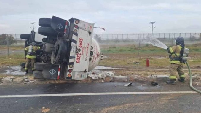 Peñón–Texcoco continúa cerrada tras volcadura de pipa con combustible