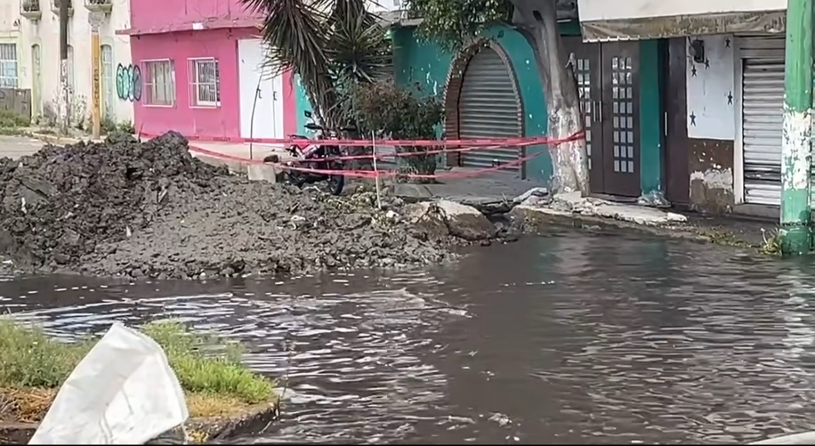 Fuga de agua por obras inconclusas provoca inundaciones en calles de Ecatepec