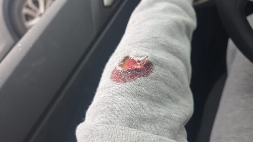Paramédicos trasladaron a la funcionaria lesionada a un hospital cercano, donde fue atendida por personal médico especializado. Las autoridades de salud confirmaron que la víctima se encuentra estable y recibiendo atención médica por la herida en el brazo, sin que se reporten otras lesiones graves.