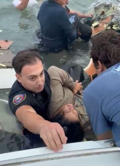 La Oficina del Sheriff del condado Galveston manifestó que miembros de su equipo de buceo, de su unidad de drones y otros habían acudido al lugar del choque.